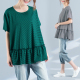 1046实拍 新款大码女装韩版宽松褶皱下摆时尚条纹短袖T恤女上衣