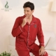 春秋睡衣男红色纯棉休闲男式长袖全棉商务款加厚衬衫领套装家居服