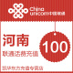 河南联通100元 联通话费充值 手机话费充值卡 官方直充快充秒充