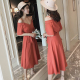 连衣裙2017春夏新款仙气女两件套装网纱名媛气质透视礼服中长款仙