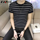 男T恤2017春季新款男士圆领条纹百搭短袖上衣韩版修身青年短袖T恤
