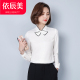 雪纺衬衫2017春装新款时尚显瘦白色蝴蝶结立领上衣打底衫