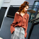 2017春装新款韩版缎面衬衫女长袖宽松白色衬衣V领露肩仿真丝上衣