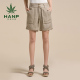 Hanp/汉麻世家简约直筒女裤 中腰短裤时尚百搭卡其色全麻女装裤子