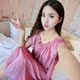 夏季性感女士冰丝吊带睡裙两件套睡衣冰丝纯色五分袖薄款女家居服