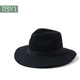 黛诗雅 欧美高端秋冬季羊毛呢礼帽女 复古英伦黑色大檐爵士帽毡帽