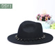 黛诗雅 呛口小辣椒爵士帽欧美风复古英伦皮带羊毛呢宽檐礼帽