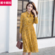 连衣裙春秋款2016新款碎花韩国中长款显瘦修身印花长袖雪纺长裙女