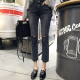 大码牛仔裤四季新款简约印花男士韩版高弹青年修身哈伦小脚裤长裤