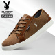 花花公子亚麻男鞋春季透气新款英伦风灯芯绒休闲鞋男潮板鞋帆布鞋