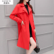 欧洲站2017春季新款韩版宽松外套潮冬季双排扣大红色中长款风衣女