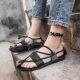 平底尖头单鞋女春季2017新款韩版一字扣平跟浅口皮带扣低跟女鞋