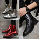 秋冬季亮皮马丁靴韩版军靴潮流布洛克朋克金属皮靴工装高帮男靴子
