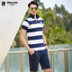 男士夏季休闲polo衫条纹短袖t恤中年爸爸修身翻领半袖短裤套装男