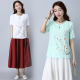 中国风2017夏装文艺棉麻女装休闲圆领亚麻短袖t恤女印花宽松上衣
