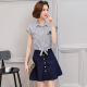 素选2017年夏装新款连衣裙条纹翻领假两件短袖裙子女条纹显瘦中裙