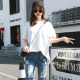素选2017夏装新款百搭宽松女裤破洞牛仔裤脚口毛边牛仔裤女破洞裤