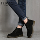 真皮坡跟女靴短靴女鞋潮秋冬加棉短靴英伦马丁靴女棉鞋短筒靴子女