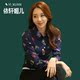 百搭青花瓷印花衬衫女长袖2017春装新款修身大码韩版碎花雪纺衬衣