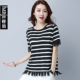 夏天冰丝t恤女短袖针织衫宽松条纹丅恤圆领学生上衣薄体恤打底衫