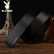花花公子平滑扣男士皮带 青年板扣牛仔裤腰带 男式休闲牛皮腰带男