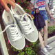 平常人百搭小白鞋女系带白色帆布鞋女韩版学生布鞋女平底休闲鞋