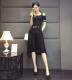 女人志 2017复古V领礼服连衣裙 背心裙 性感小黑裙6853