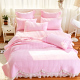 床品纯棉四件套纯色贴布绣花可爱简约粉色1.8米2m床加大全棉被罩