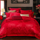 婚庆床品四件套纯棉欧式全棉贡缎提花大红色床单被套1.8m2米床