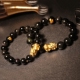 晶焕天然黑曜石单圈貔貅手链 彩虹眼佛珠男女款生肖手串