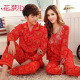 花梦儿秋冬新郎新娘大红色长袖纯棉睡衣全棉情侣婚庆男女喜庆结婚