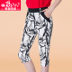 夏季薄款中年女裤妈妈装花裤子女士休闲裤夏天高腰弹力紧身七分裤
