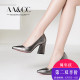粗跟单鞋真皮2017春夏季新款尖头职业单鞋黑色百搭英伦风高跟鞋