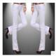 2016春季新款女装西裤大码裤子多口袋撞色纽扣水洗长裤拉链微喇裤