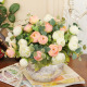 迷妆 现代简约花瓶仿真花套装家居桌面摆设 镀银玻璃花瓶套装