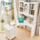 木桐居欧式实木直角转角书桌书柜组合法式台式电脑桌象牙白写字台
