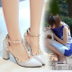 欢乐颂2曲筱绡同款尖头粗跟铆钉高跟鞋T字带包头凉鞋女夏2017牛皮