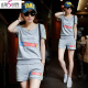 2017夏季新款韩版数字圆领宽松短袖短裤两件套休闲运动套装女夏潮