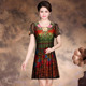2017夏季新款中年女装网纱连衣裙中老年妈妈装大码修身短袖花裙子