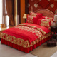 磨毛加厚床罩四件套床裙式床上床套床笠婚庆款床群1.8米2.0m单件