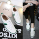 春秋新版彩虹边小白鞋女圆头厚底板鞋真皮系带单鞋女乐福鞋