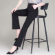 韩版高腰开叉微喇叭裤女修身显瘦九分裤黑色休闲长裤2017春装新款