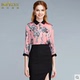 柏拉迪丝2017秋新款欧美时尚修身显瘦桑蚕丝真丝印花衬衫女打底衫