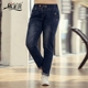 春装大码女装牛仔裤胖mm韩版松紧腰弹力口袋胖人修身休闲小脚长裤