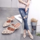 欧洲站2017夏季新款尖头粗跟凉鞋包头高跟鞋镂空拖鞋中跟珍珠女鞋