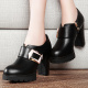 邻家天使高跟单鞋女秋鞋2015新款粗跟防水台黑色高跟鞋通勤女鞋