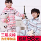 儿童睡衣冬季男孩厚珊瑚绒夹棉睡衣男童法兰绒棉衣冬天加厚家居服