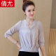 七分袖打底衫女t恤春夏装2017时尚新款韩版宽松遮肚子柔美雪纺衫
