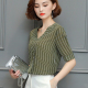 柔美雪纺衫女短袖2017夏季新款V领衬衣百搭条纹衬衫上衣宽松小衫