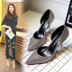 2017春秋季欧美新款尖头浅口单跟鞋时尚亮片中空百搭高跟鞋女凉鞋
